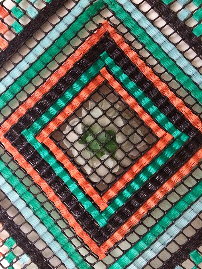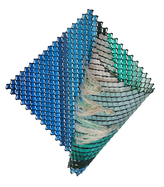 Kelp Forest, tissage corde de pêche sur filet plastique, 61 x 65 cm, 2021